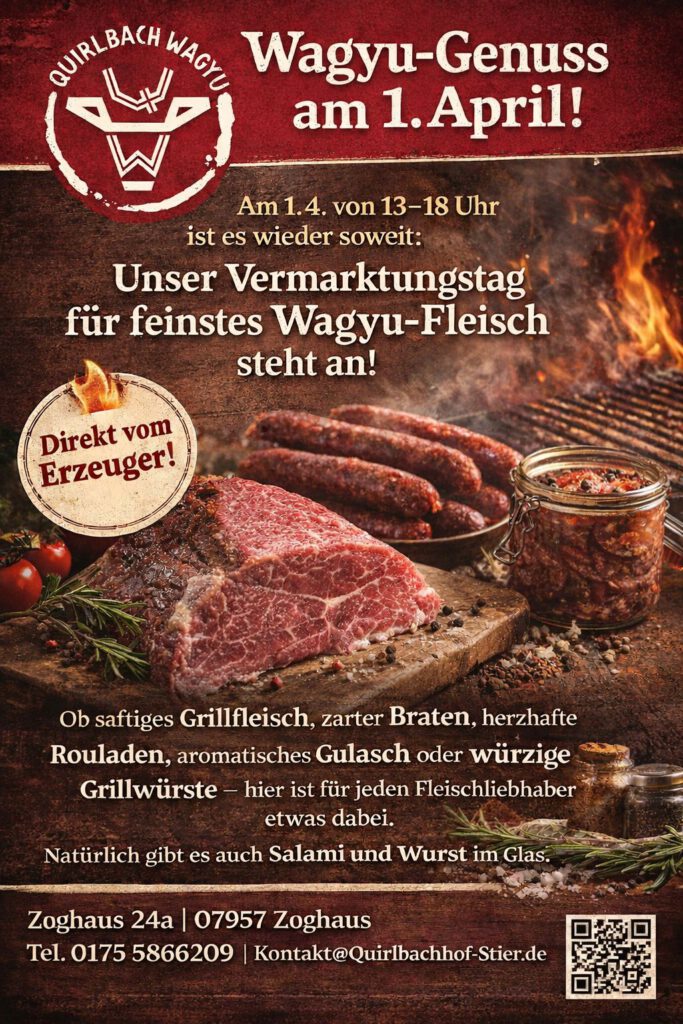 von 13–18 Uhr ist es wieder soweit: Unser Vermarktungstag für feinstes Wagyu-Fleisch steht an!